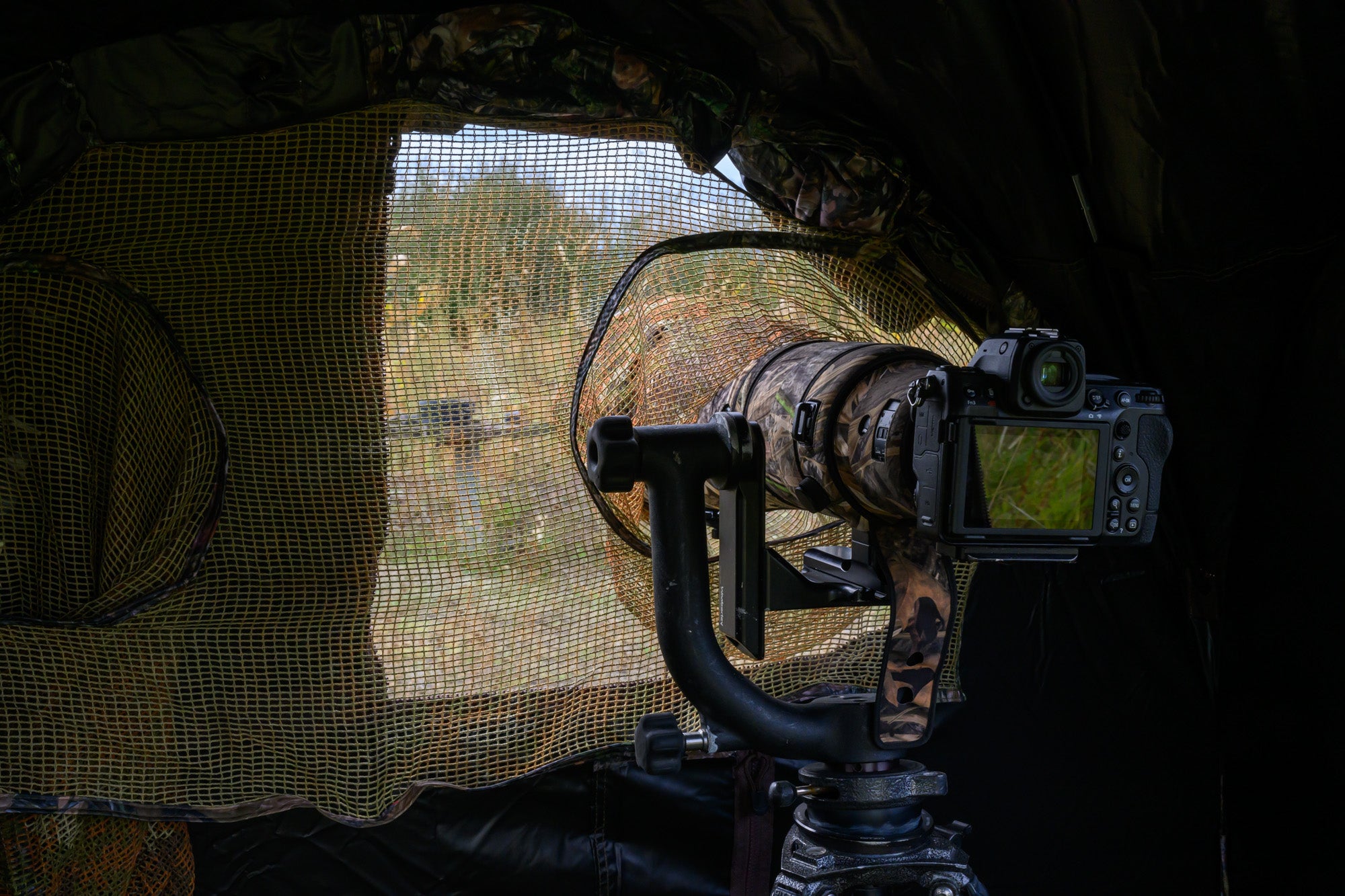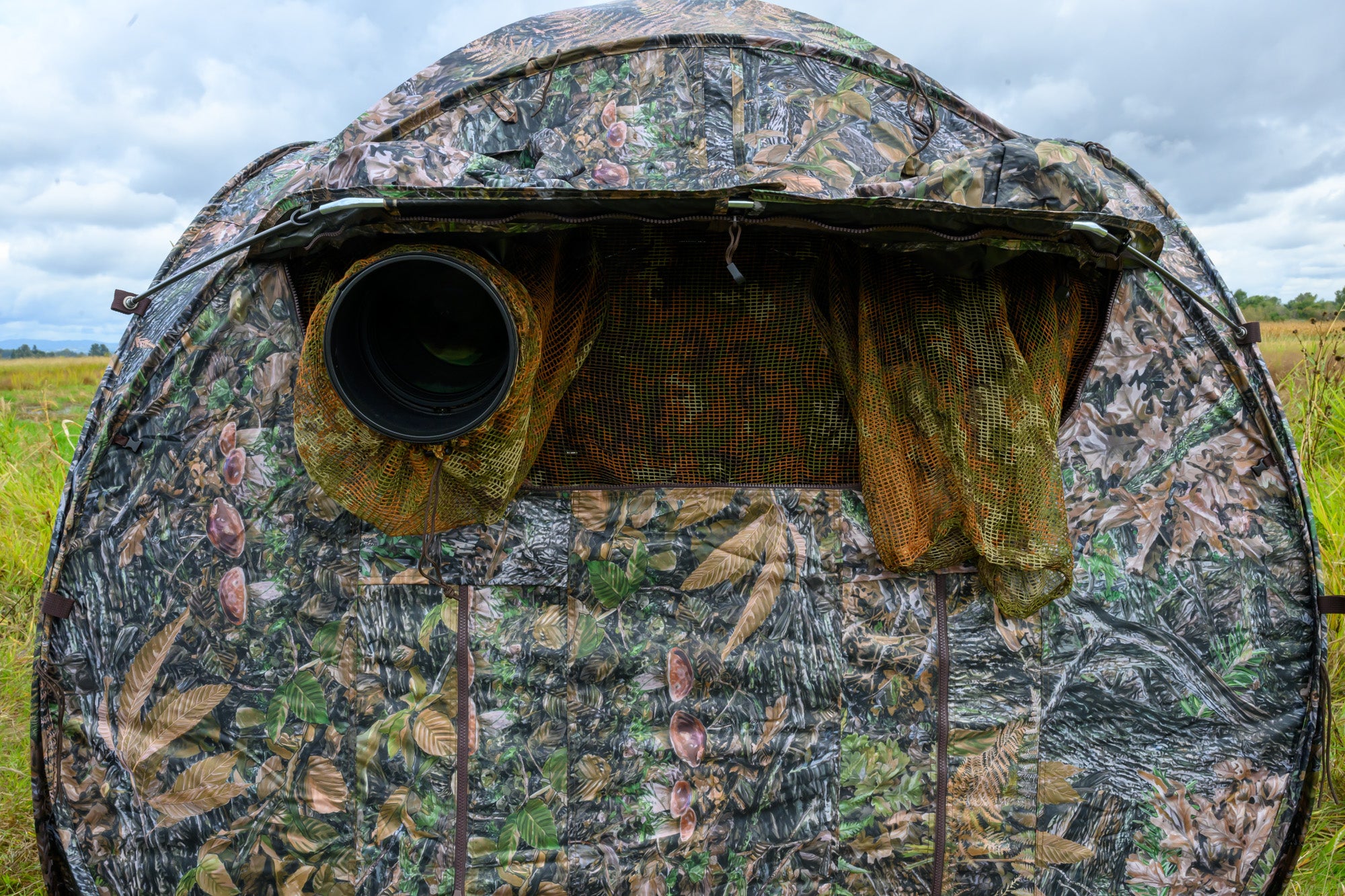 Rear Door Shooting Port – Large mesh window with an integrated lens snoot for lenses up to 600 mm f/4. Choose from fully covered, partially open, or wide open for shooting, visibility, or ventilation.